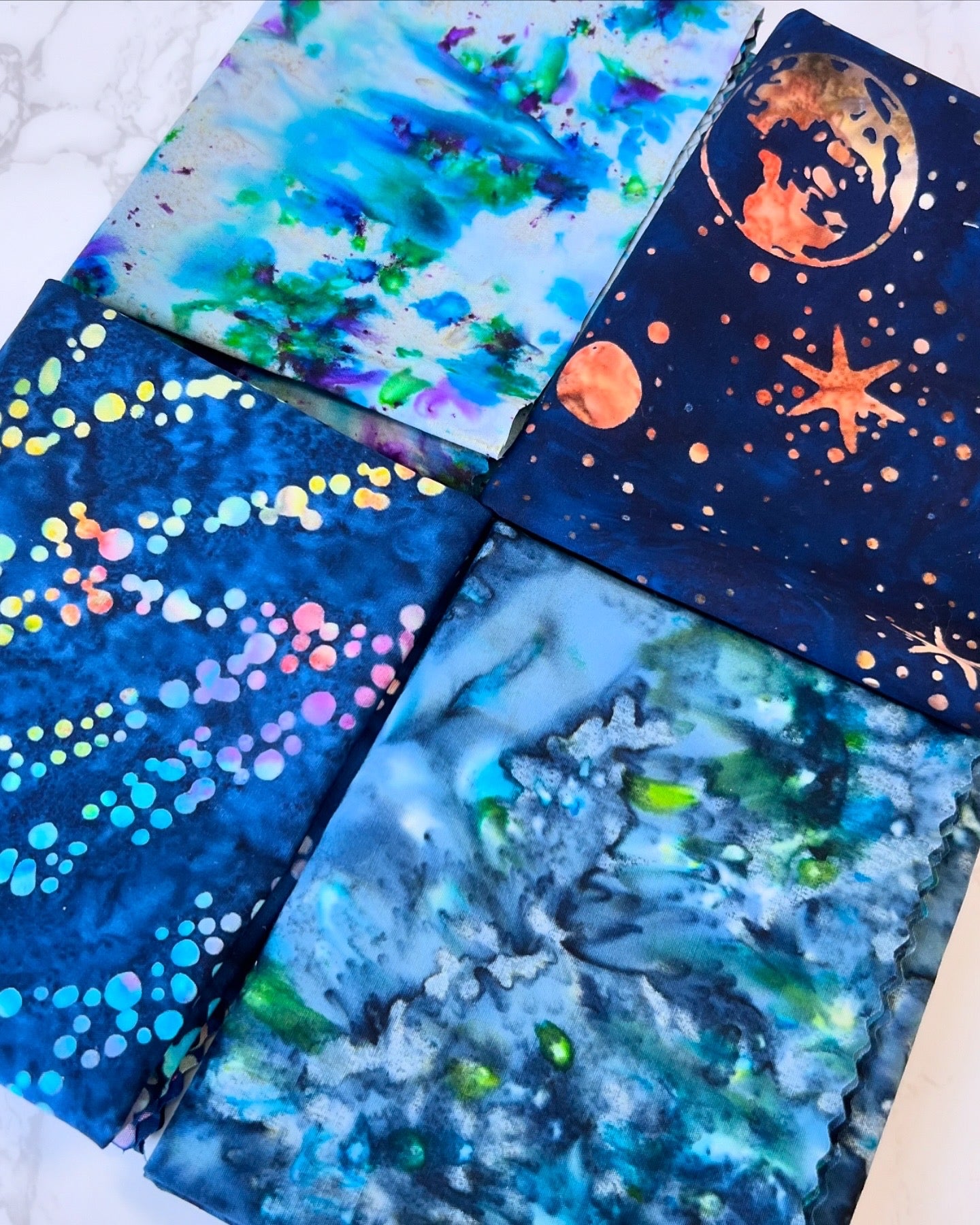 This collection features 4 fat quarters of my favorite batiks! Each piece of fabric measures 18 inches by 20-22 inches, more than enough for several projects!