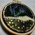 This is a handcrafted, one-of-a-kind embroidery hoop inspired by the landscapes of Oregon and the holiday season.