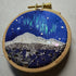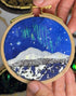 This is a handcrafted, one-of-a-kind embroidery hoop inspired by the landscapes of Oregon and the holiday season.