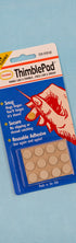 These thimble pads from Colonial Needle Co. work just like a thimble but you can barely feel its there! Comfortable to wear all day and can be removed and reused multiple stitching sessions. This self-adhesive leather pad sticks to your fingertip and is tough enough to handle even the heaviest stitching projects. Its lightweight construction gives you more needle control and an overall more enjoyable experience.