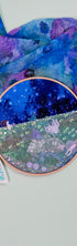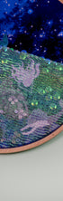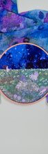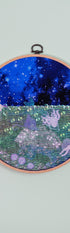 This is a handcrafted, one-of-a-kind embroidery hoop inspired by auroras and the galaxy.