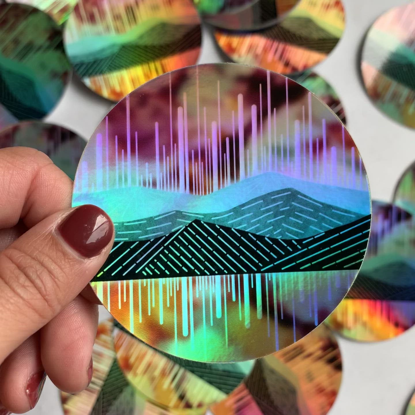 This is an original design by Hannah Austin. This holographic sticker is 3” and made of durable vinyl and is water and sun fade resistant!