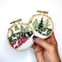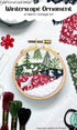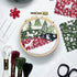 This is a beginner-friendly, fabric collage landscape embroidery kit. It includes all materials needed (EXCEPT SCISSORS) to create a winter ornament or wall decor like the one pictured here: